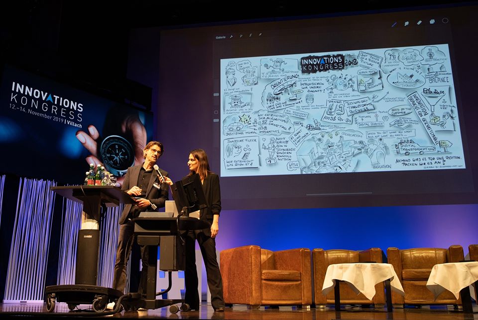 Alle 2 Jahre findet einer der größten Innovationskongresse Europas in Villach statt. Seit 2013 arbeite ich als „Kongresskünstler“ immer wieder daran, die Trends und Stimmungen in verschiedener Form visuell festzuhalten. Diesmal habe ich mir zur Aufgabe gemacht 2 voneinander getrennte Bilder zu entwickeln. Das Erste ist ein GRAPHIC RECORDING, welches spontan während der Vorträge am […]