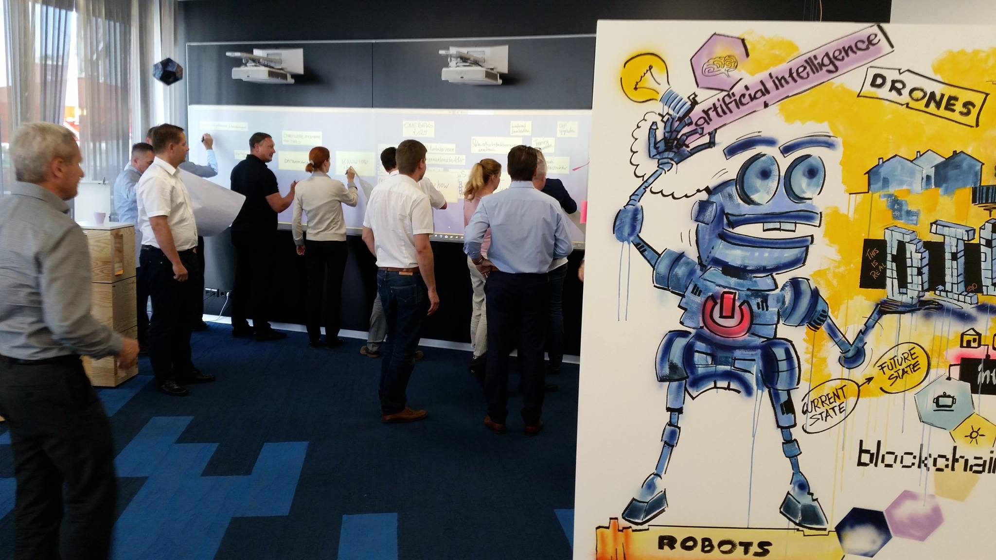 Im neuen B4B Innovation Lab wird intensiv über die Zukunft gesprochen. Neue digitale Werkzeuge ermöglichen ungeahnte Businessmodelle. SAP ist einer der Top Global Digitalisierungs-Transformer und in unserem Labor werden die neuen Pläne geschmiedet :-). Workshopmoderation und digital visualizing by Reinhard Gussmagg